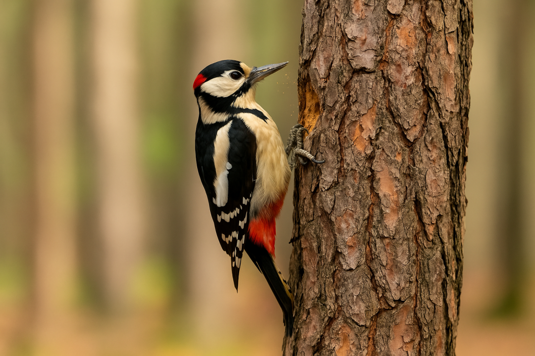 특수한 부리와 충격을 완화하는 머리 근육 덕분에 딱따구리는 그렇게 쪼아 대도 두통이 생기지 않는다. 봄이 되어 나무에 물이 오르고, 그 물이 맛난 영양분을 싹이 있는 곳까지 실어 나를 때면 딱따구리는 줄기나 가지의 약한 곳을 찾아 거기에 작은 구멍을 낸다.